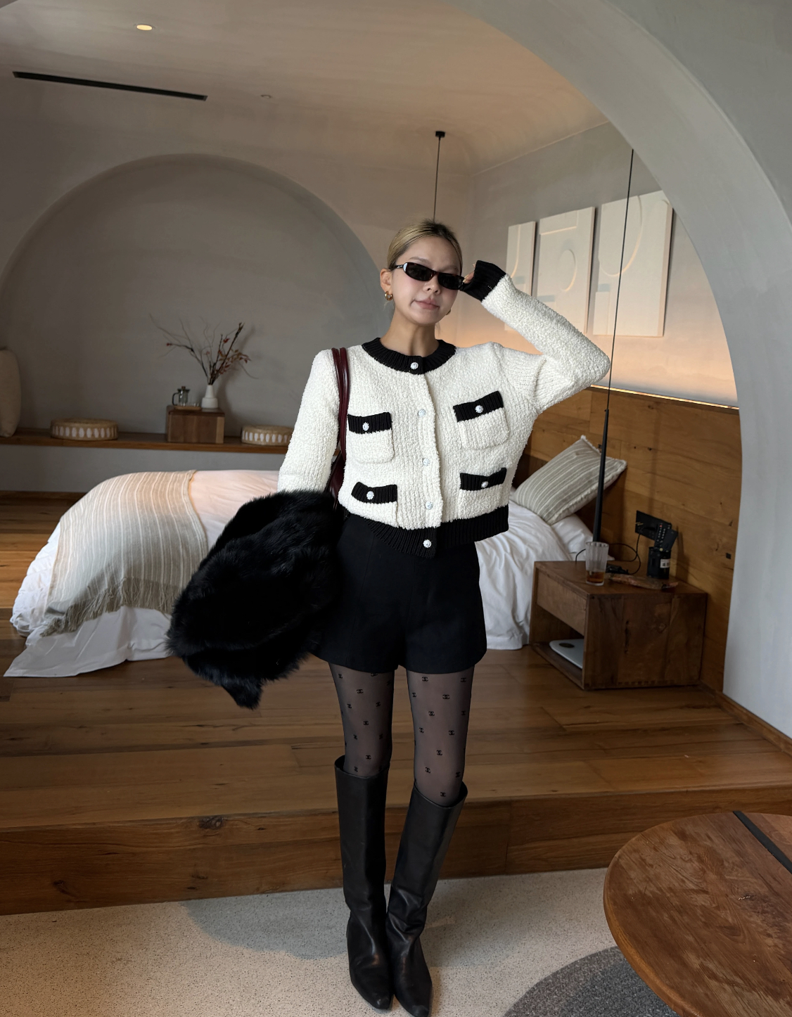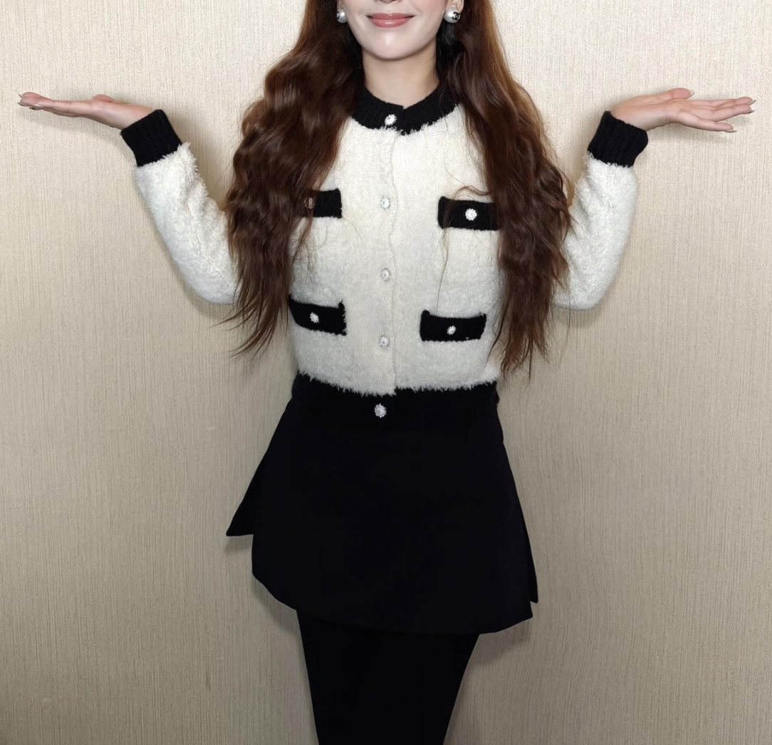 CC 25SS Classic black and white contrasting pocket knit cardigan