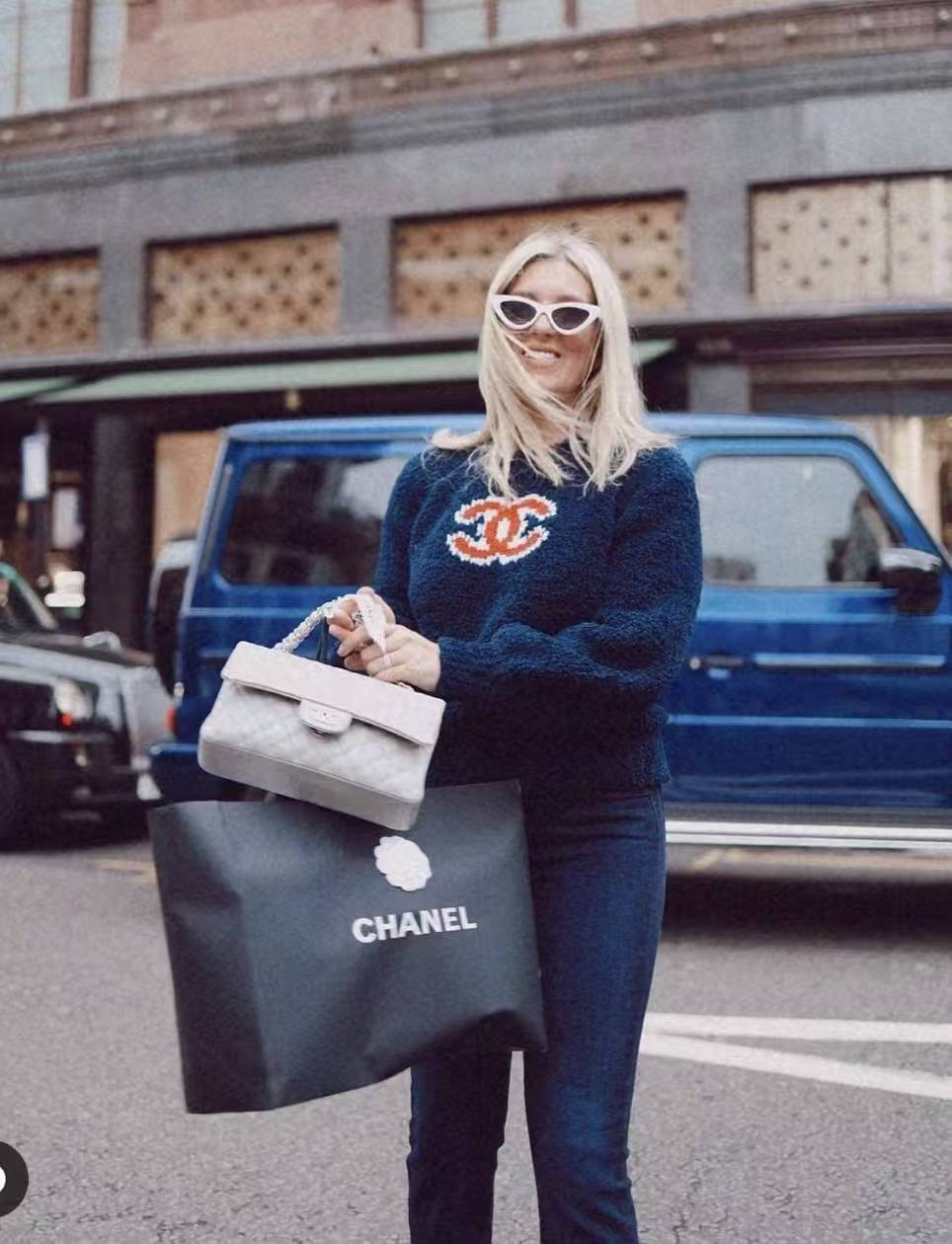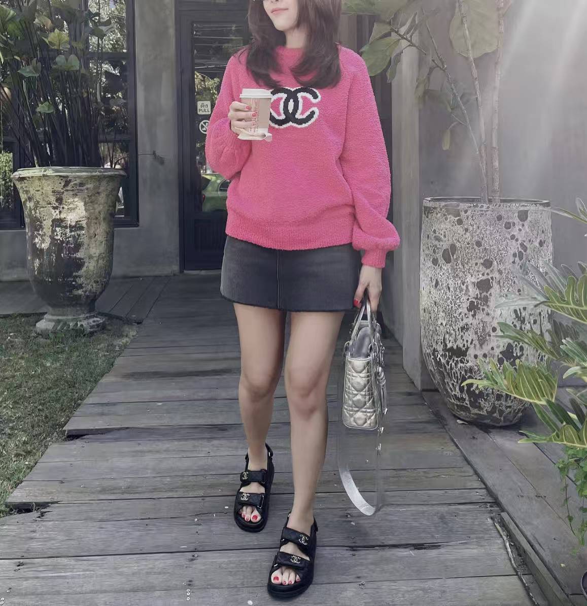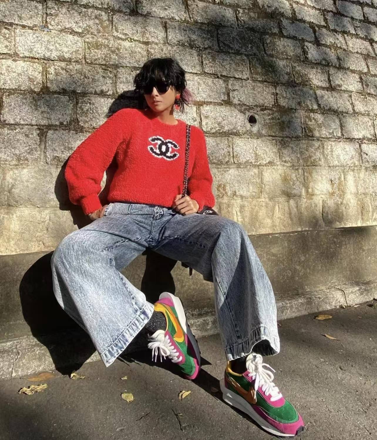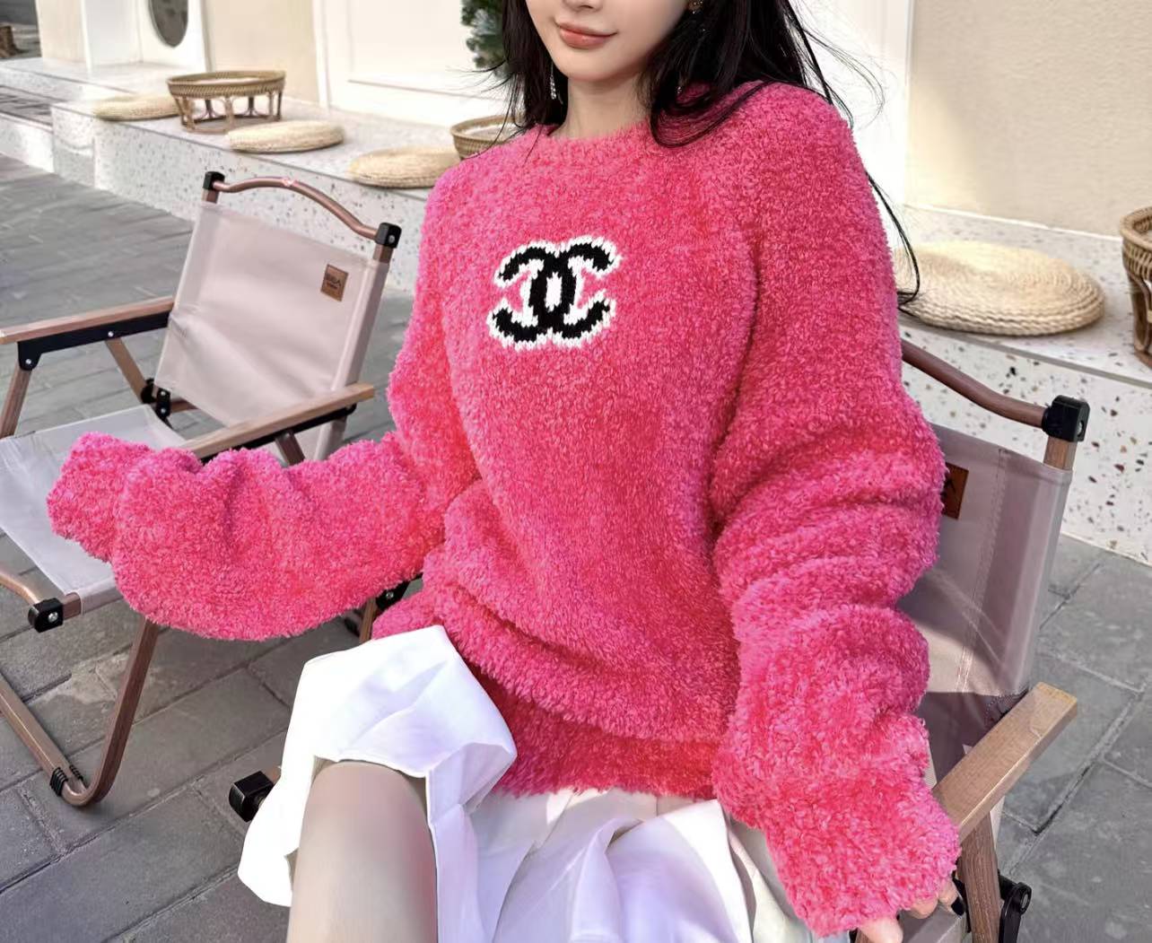 CC Jacquard logo round neck tricolor knitted sweater