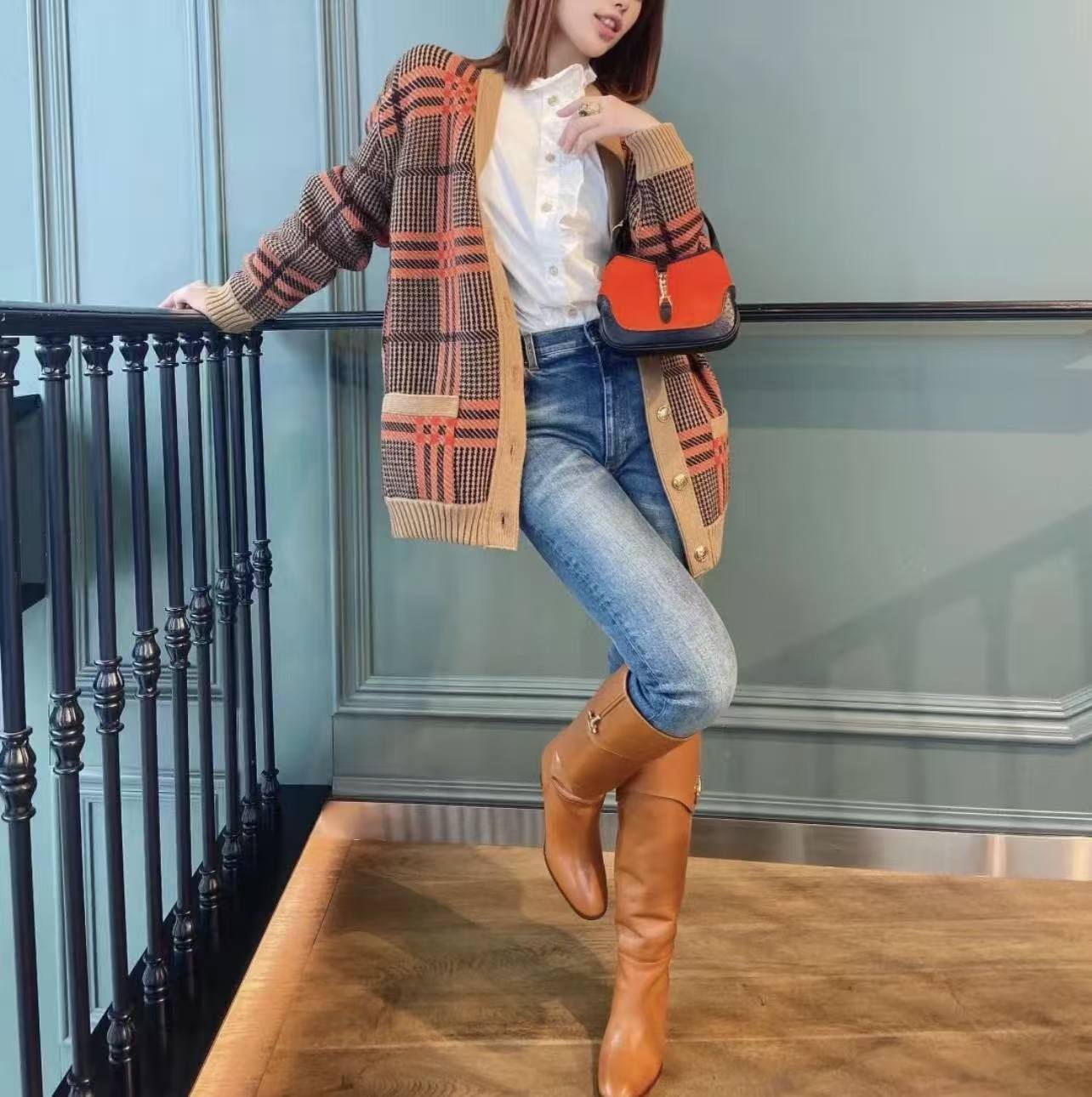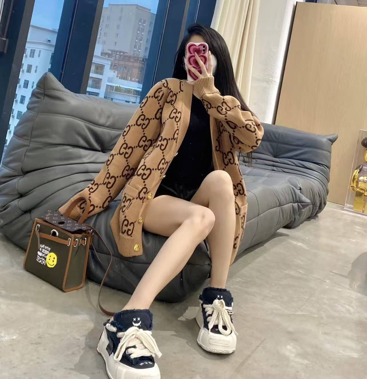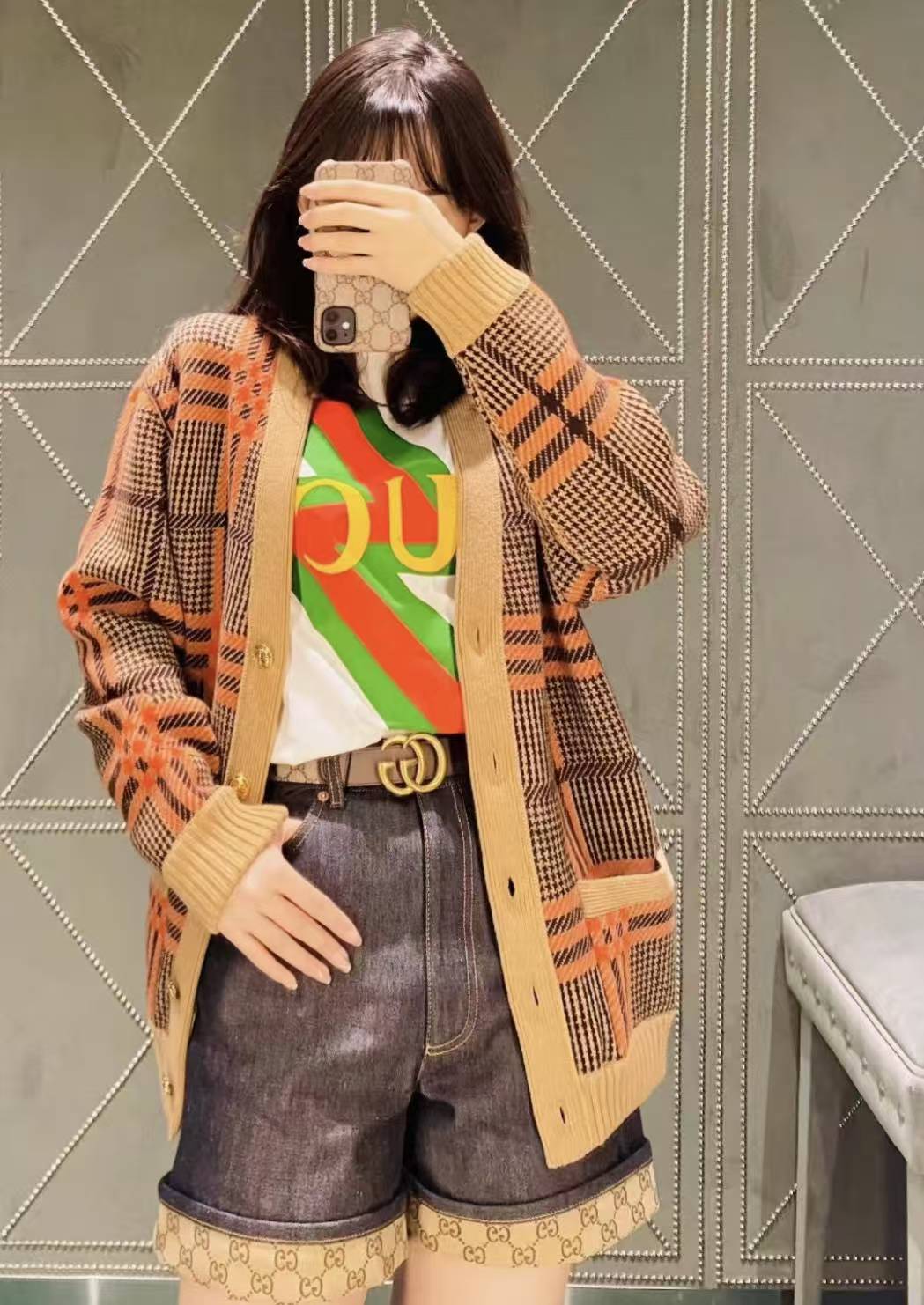 GG Classic vintage double-sided knitted wool cardigan