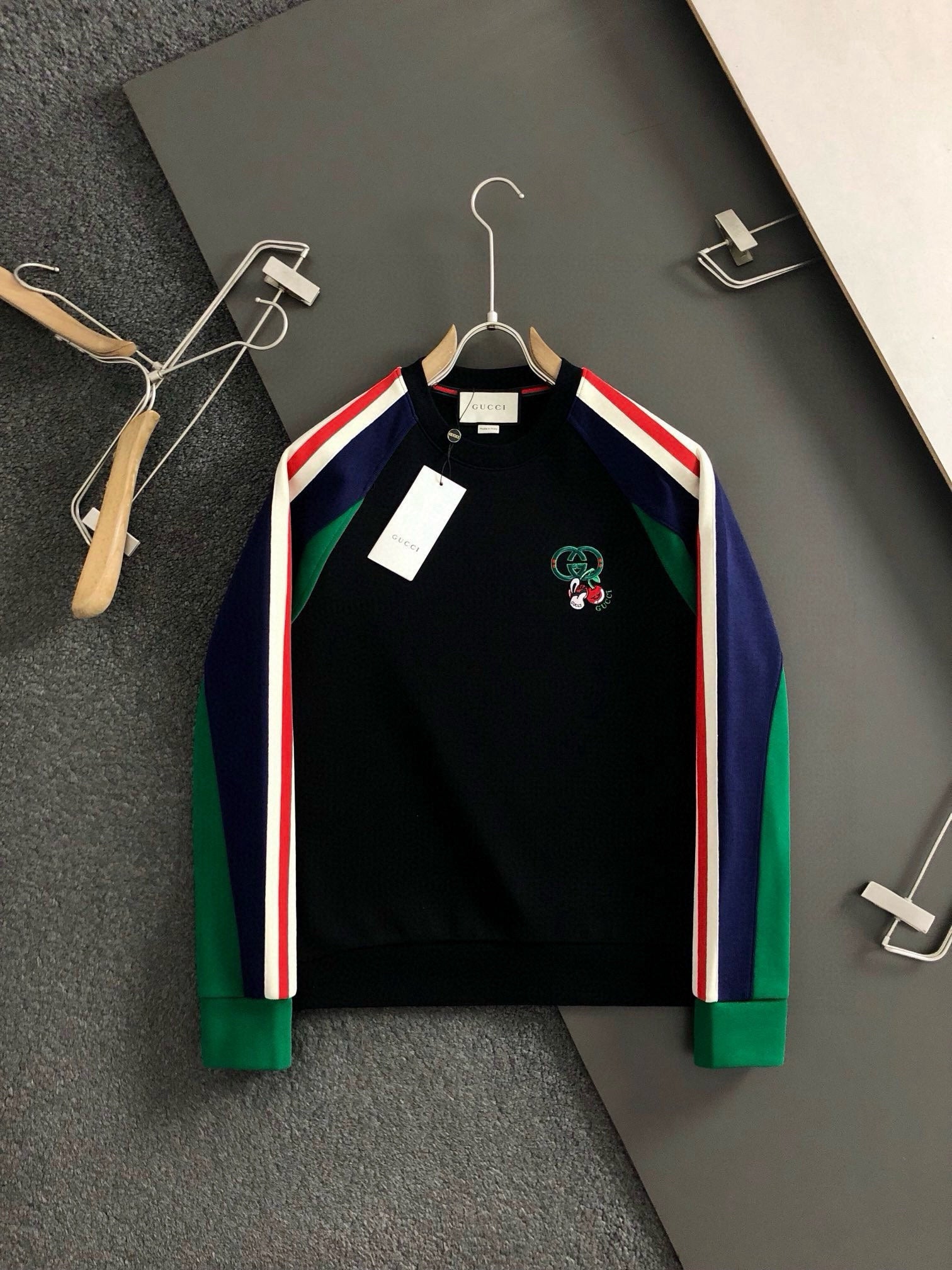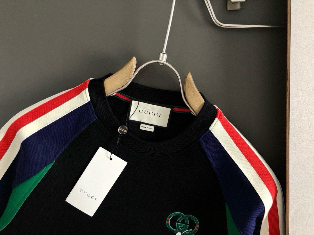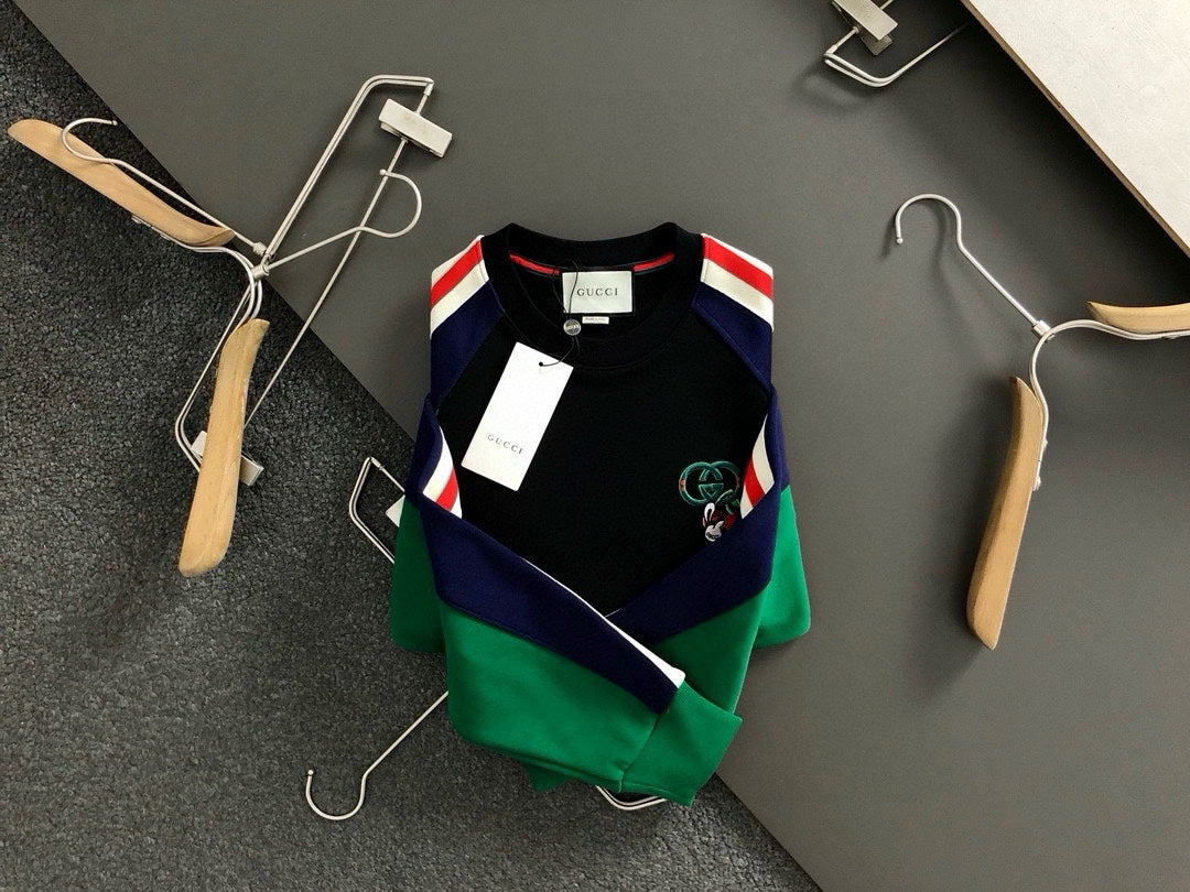 Multicolor spliced webbing thickened round neck sweatshirt
